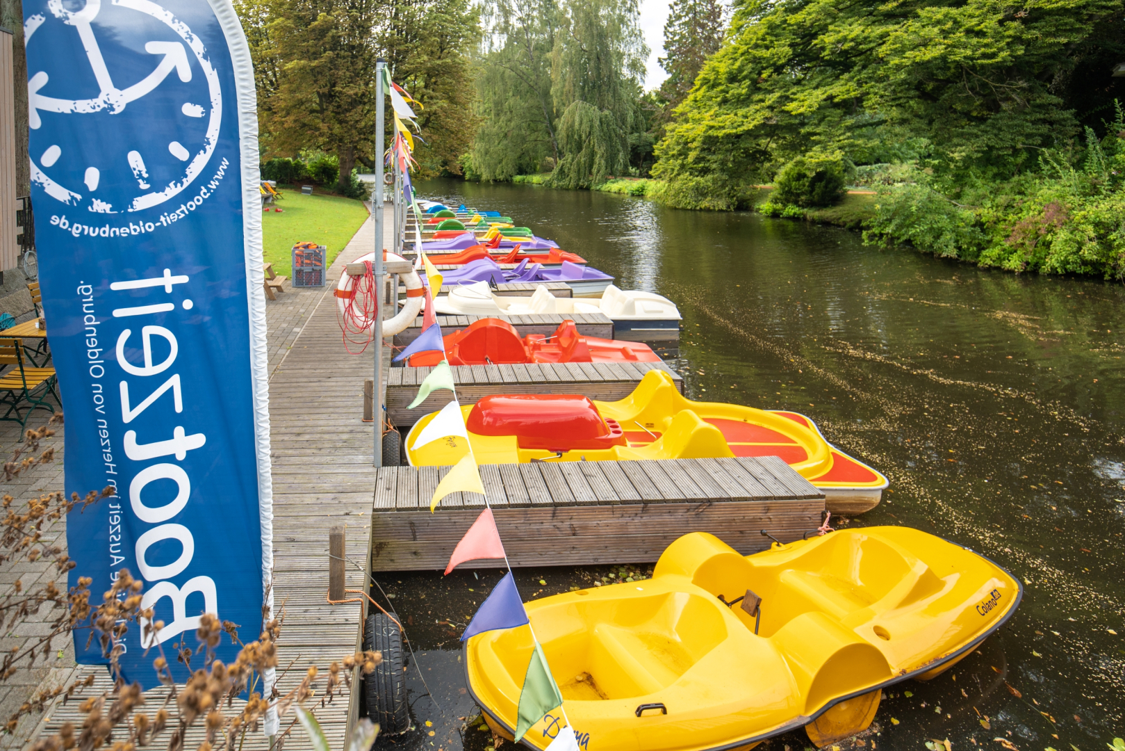 Der Boots-Verleih am Schlossgarten und in direkter Nähe zur Fußgängerzone hat eine lange Tradition in Oldenburg. Nach einem Pächterwechsel wurde die Einrichtung 2018 neu belebt und entwickelte sich während der Saison von April bis Oktober zu einem beliebten Treffpunkt. Denn auf der Sonnenterrasse direkt am Wasser bietet ein Imbiss Snacks und Mahlzeiten, Kaffee und Kaltgetränke.