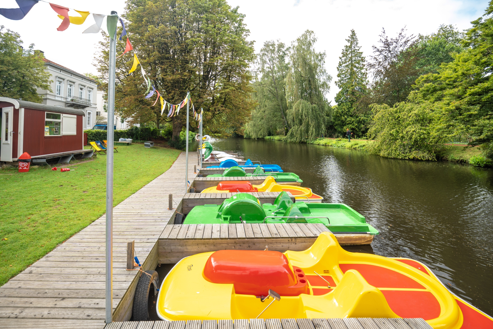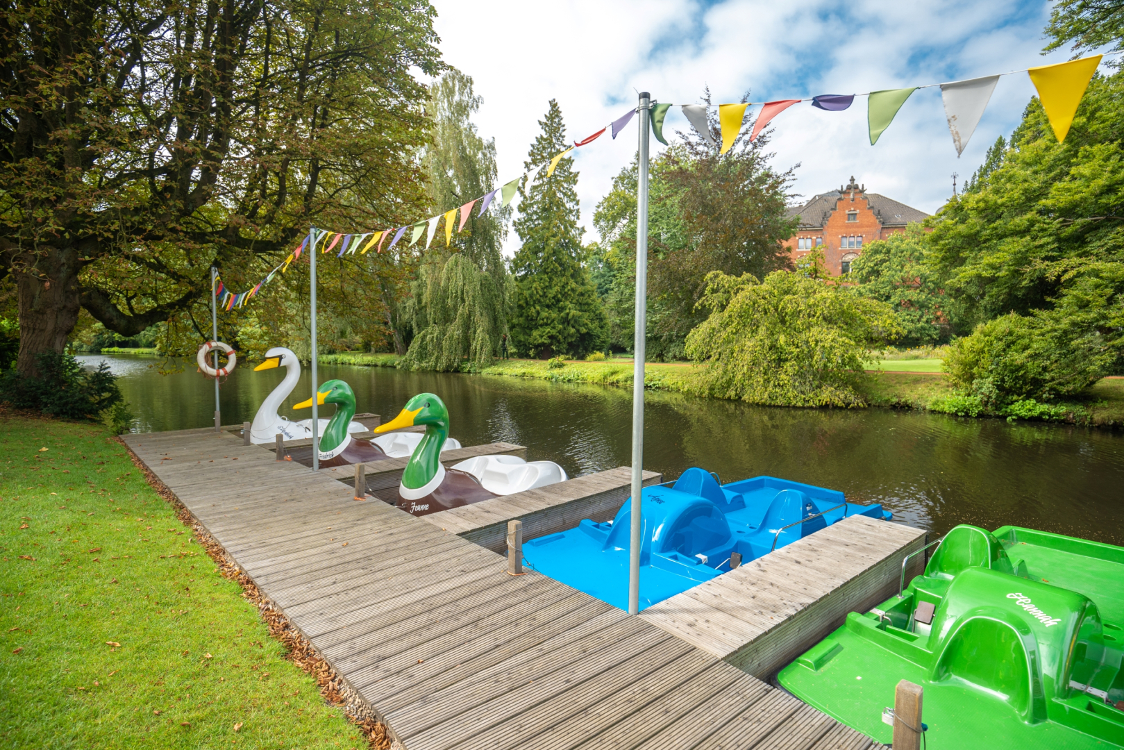 Alte Bäume, die teils weit übers Wasser hängen, säumen den Weg der Tretboot-Kapitäne, die auf der Mühlenhunte am Oldenburger Schlossgarten entlang in Richtung Olantis-Bad schippern. Für den Törn stehen beim Tretbootverleih Bootzeit Oldenburg gleich am Augusteum und gegenüber vom Prinzenpalais unterschiedliche Tretboote zur Auswahl: Klassiker oder die auffälligen Schwanen- oder Entenboote.