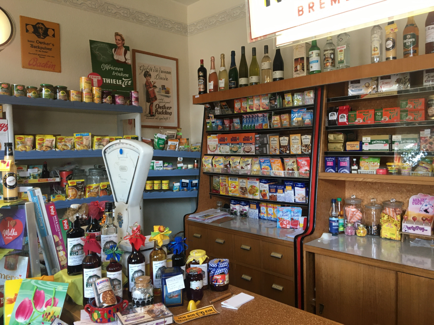 Hinter diesem besonderen Geschäft verbirgt sich kein Museum, sondern ein traditioneller Gemischtwarenladen mit vielen Artikeln des täglichen Lebens. Dabei findet sich vieles aus alten Tagen, sodass der Besucher das Gefühl erhält, einen Kaufmannsladen aus Kindertagen zu betreten. Das Geschäft wurde 1912 gegründet und bewahrt ganz bewusst die Tradition des dörflichen Lebens. In "Omas Stube" sowie im gemütlichen Garten werden Kaffee, Tee, Kuchen und Zuckerzwieback serviert. Dieses besondere Kleinod ist gut per Rad erreichbar. Es liegt beispielsweise an der Route um Oldenburg im Ammerland.