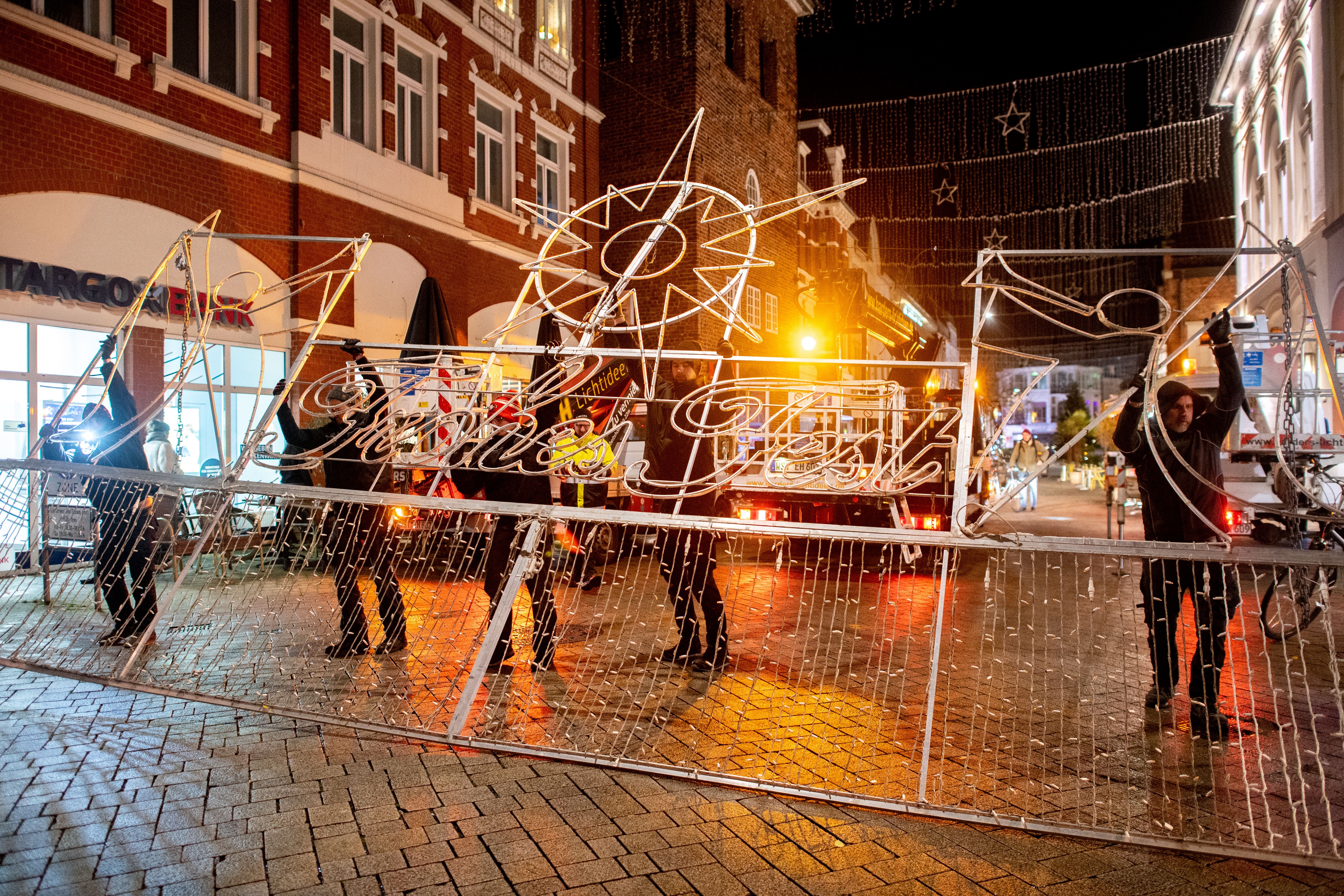 Aufhängung der Weihnachtsbeleuchtung Oldenburg