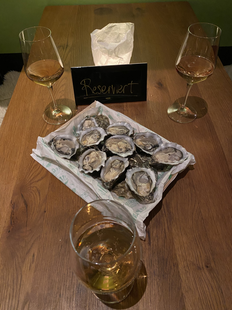 Ein Glas Rosé und sechs Austern