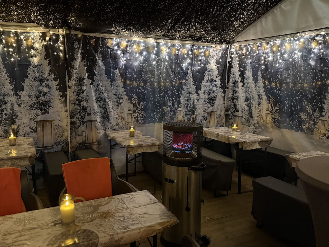 In gemütlicher Atmosphäre treffen sich Glühweinfreunde im Outdoorbereich oder im beheizten Zelt. Angeboten wird Kessel-Glühwein in weiß, rosé und Rot - allesamt von zwei TOP Winzern.