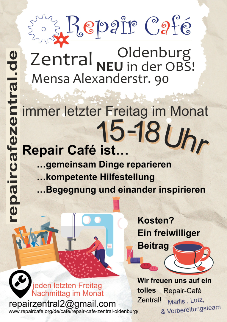 Es gibt Reparaturunterstützung für Elektro-Kleingeräte, Fahrräder, Nähen, Stopfen, Mechanik, Notebooks auch W10/11 Updateverlängerung und Linux https://endof10.org/ und natürlich Kaffee/Kuchen. Alles auf Spendenbasis.