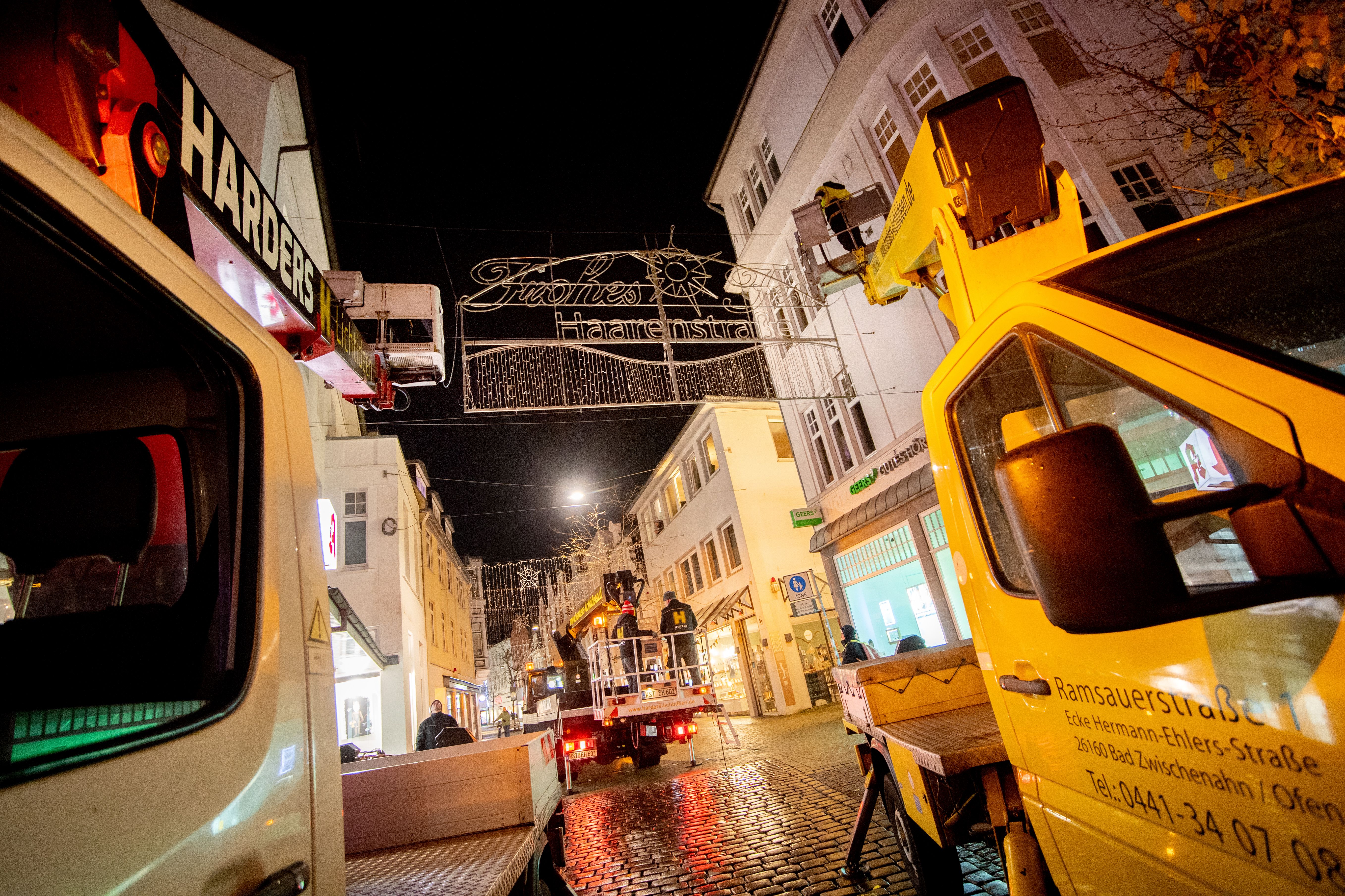 Weihnachtsbeleuchtung Hängung in der Haarenstraße